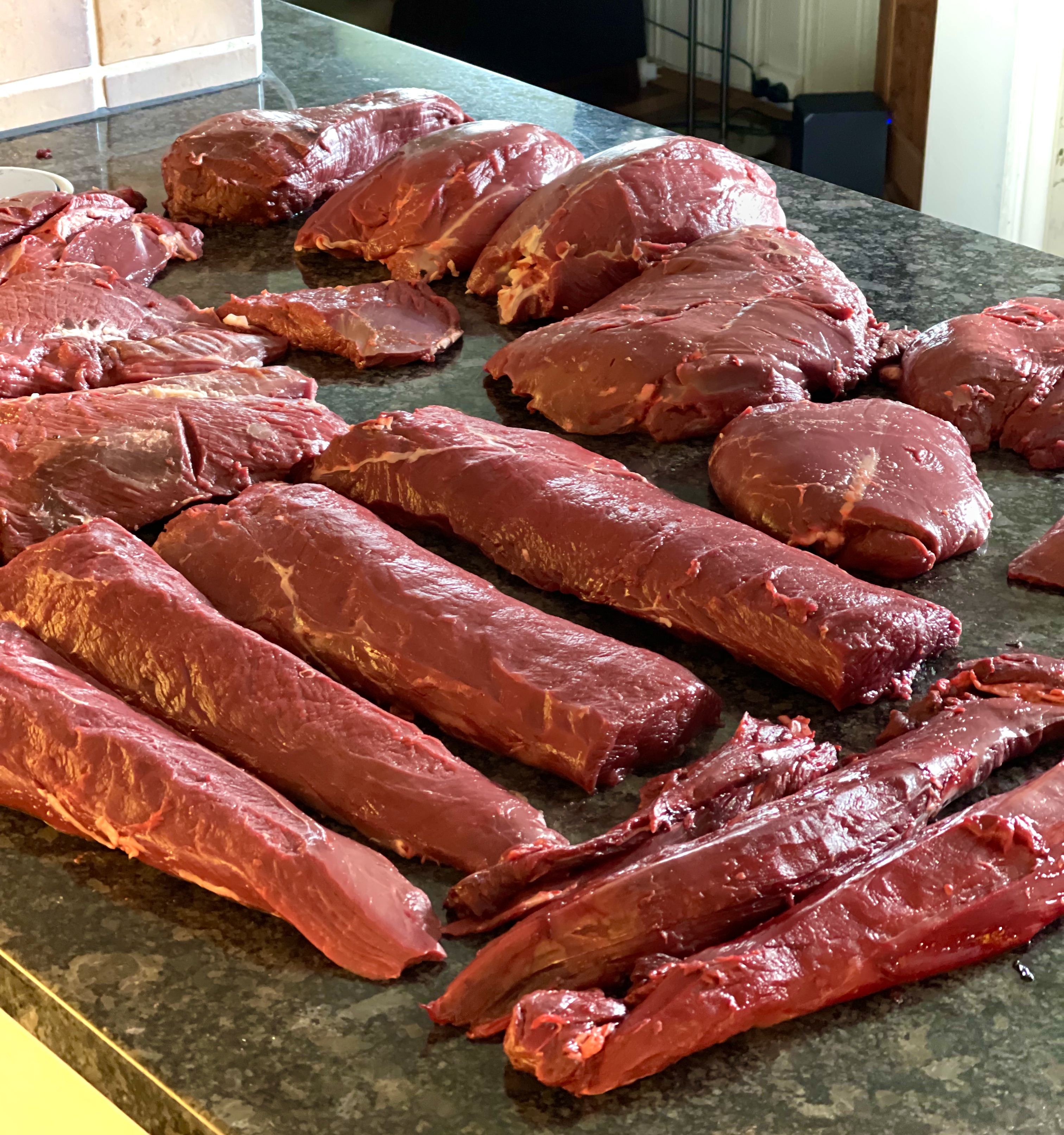 Kjøttet var en liten ytrefilet og en enda mindre indrefilet av hjortkalv. Kjøttbitene var en gave fra min kjære, som på den tiden ikke hadde fått kjæreste-tittelen enda. Når jeg tenker etter så var det faktisk en av de første gangene jeg traff ham jeg ble forært denne generøse gaven.